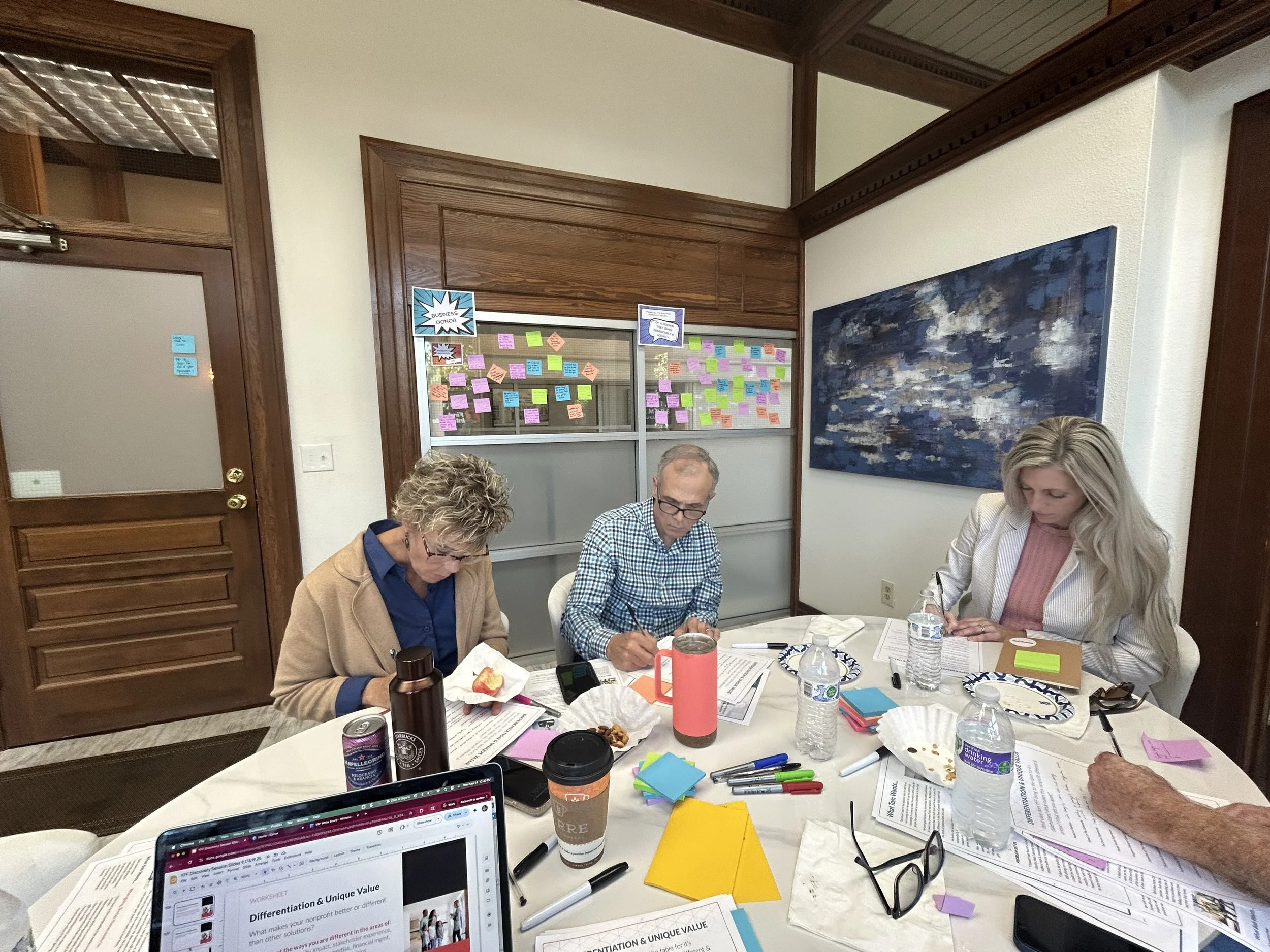 This is an intensive 2 to 3 day discovery process where we create, contemplate, collaborate for the purpose of deep engagement and connection to your prospective customers. Our clients regularly say how impactful this time is, helping them develop a cohesive team, business & marketing strategy.